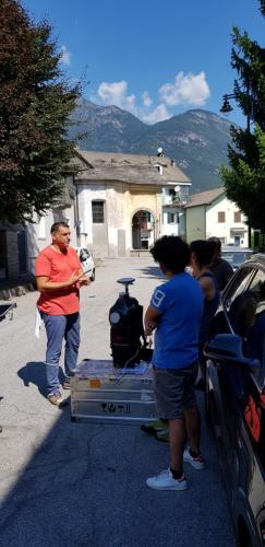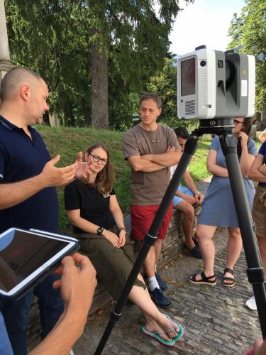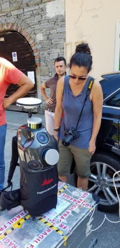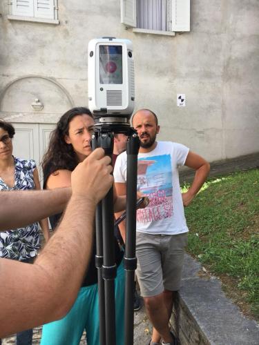 We selected twenty students, coming from Italy, Europe, South America, and India. They learned the operational issues related to measurement techniques with TLS (terrestrial laser scanner), the processing of the acquired data, and more. In fact, besides our team, we also invited national and international tutors, enriching our competencies and skills and giving the students a 360° training experience on Cultural Heritage field. In particular, Geert J. Verhoeven from Ludwig Boltzmann Gesellschaft – GmbH, Austria, challenged the students in a lecture about the photography technique and then organised a photo contest during the summer school. Luca e Marco Rosa Clot of Geostudio RC showed how to use the drone for photogrammetry survey, helping to complete and integrate the laser scanner data. Maurizio Cesprini of Canova Association organised a journey into the Ossola architecture, demonstrating the importance of knowing the territory and its traditions. Sonja Pistidda of Politecnico di Milano taught how to make a correct material and decay analysis. Richard Laing from Robert Gordon University, Aberdeen, Scotland, made a fascinating lecture on digital heritage application and social engagement in Scotland and also wrote an excellent article on us here. Simone Oppici and Marco Formentini of Leica Geosystems team showed the latest tools for 3D survey and scanning: the Pegasus Mobile Backpack, and the new RTC360 scanner.